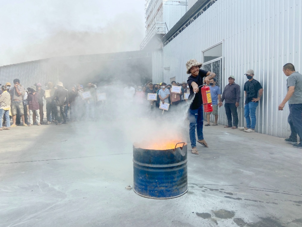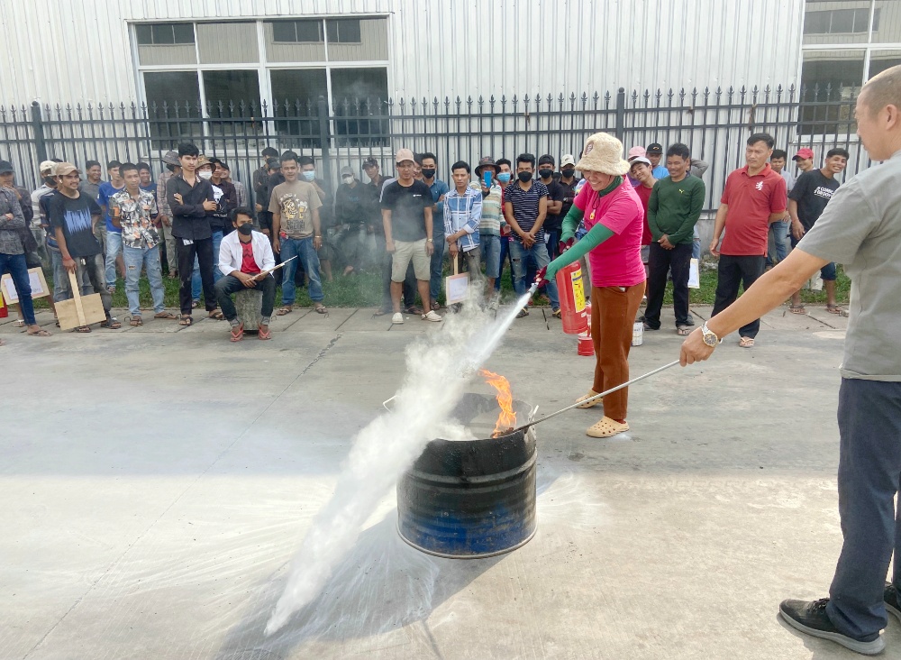 恒森公司柬埔寨厂区现有员工450人,这次培训分上、下午两场进行,着重宣传和强调消防安全和道路交通安全的重要性和必要性,并就消防器材使用进行了现场讲解与演练。