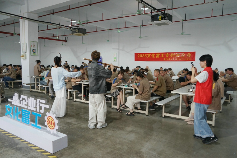 6月24日,汉林公司4楼餐厅人头攒动,歌舞飞扬,海宁市总工会文化富工专列在此送服务、送知识、送关爱。这里成了一片欢乐的海洋。海宁市总工会、海宁市工人文化宫、斜桥镇总工会相关领导参与活动。